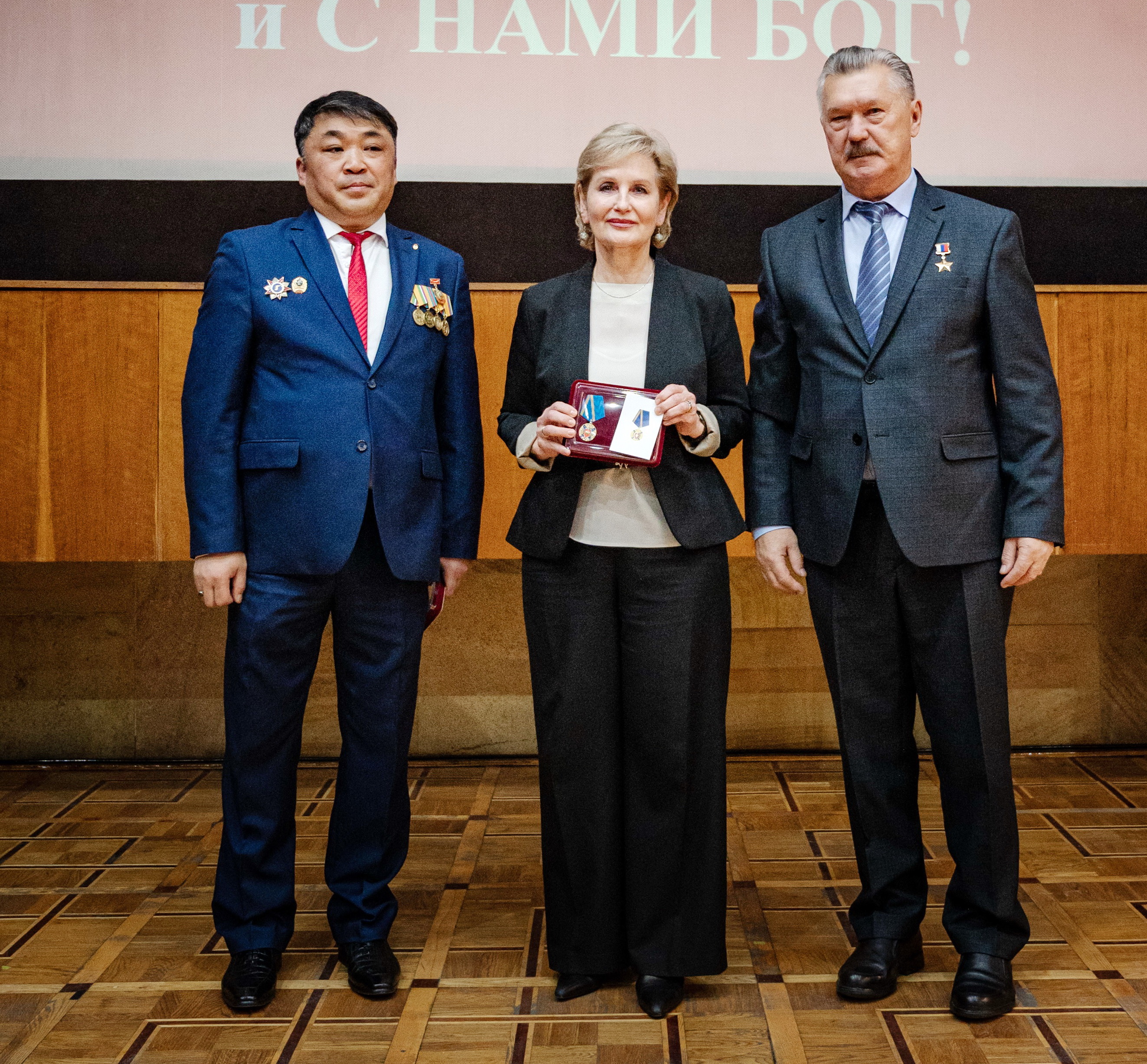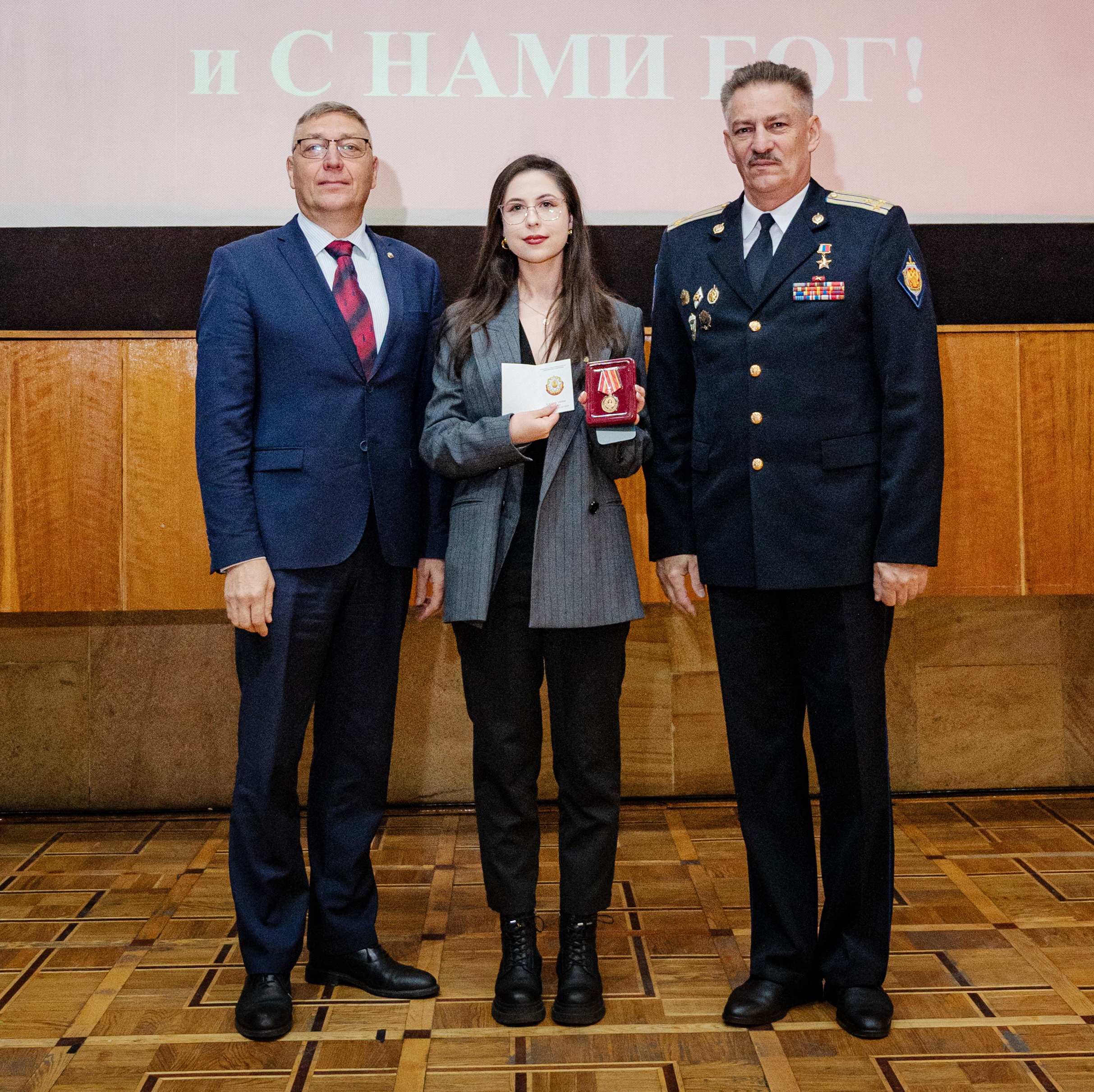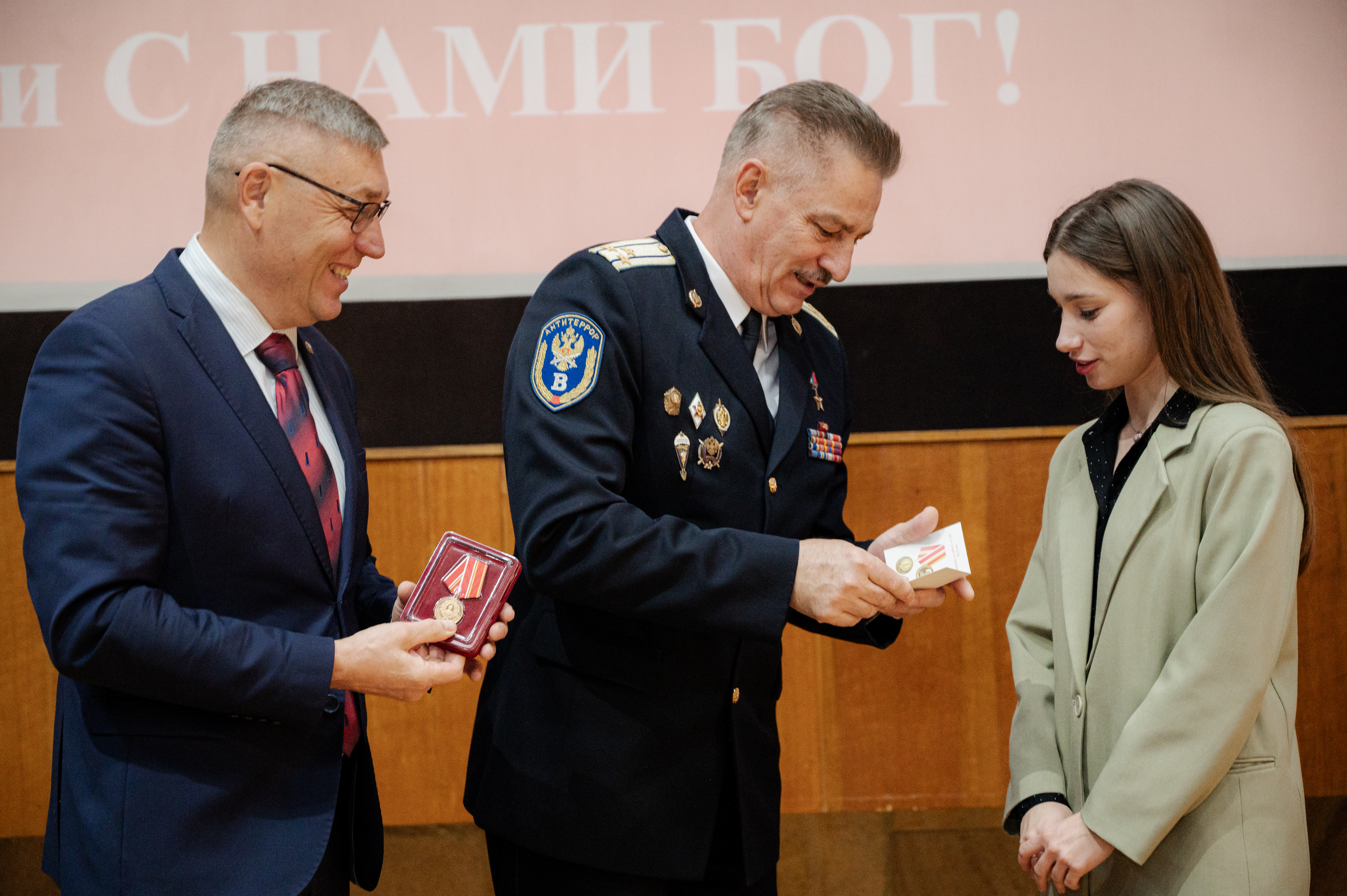 Затем последовало награждение Медалью «За активную военно-патриотическую работу» Комиссии по общественным медалям и памятным знакам, которую вручили почетные гости: