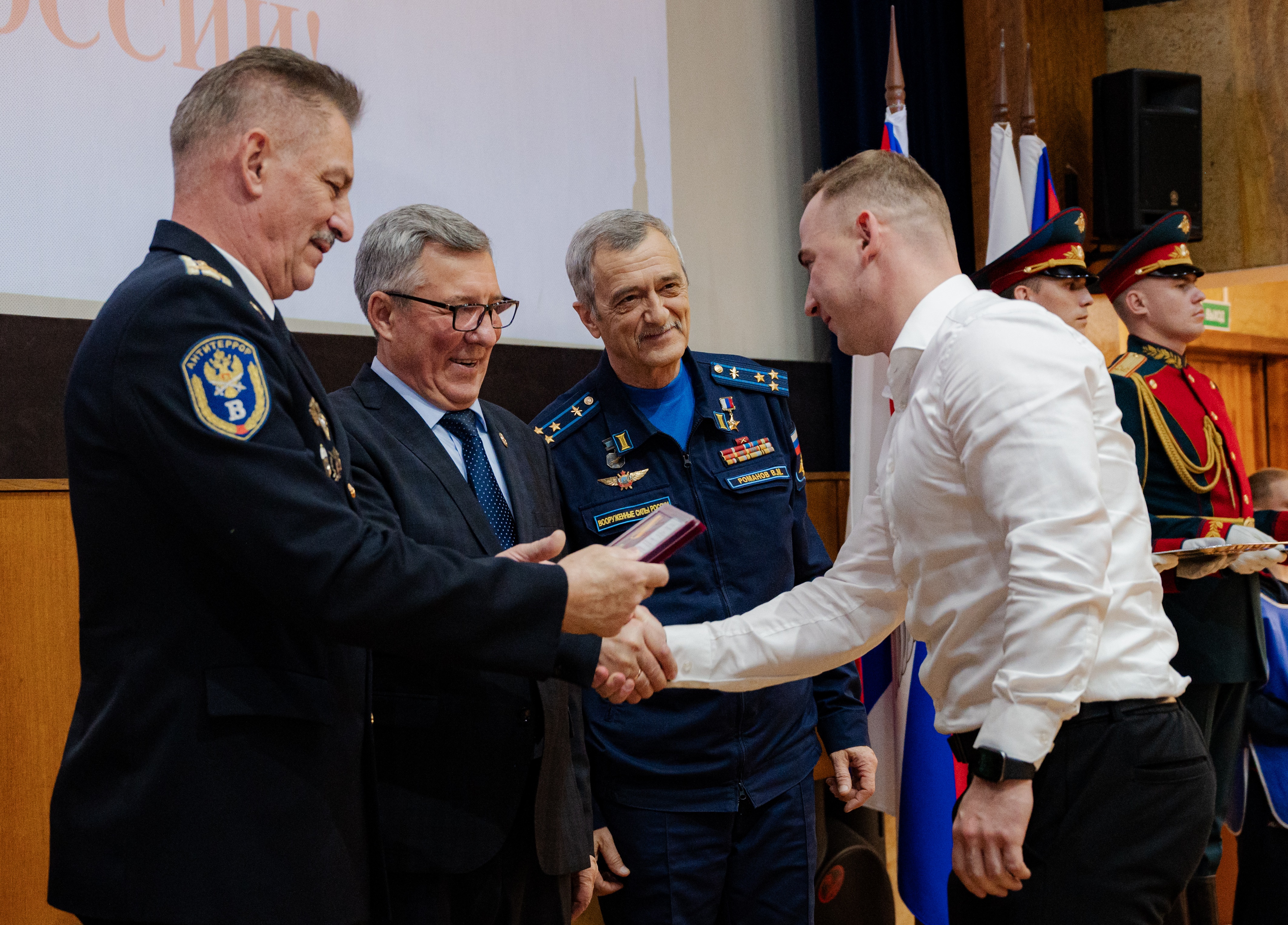 Награждение провел почетный гость Герой Российской Федерации, 1-й Заместитель Председателя Правления Клуба Героев Сивко Вячеслав Владимирович.